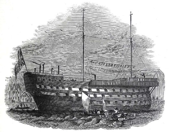 The Warrior, a Convict Hulk at Woolwich on the Thames, 1846. Picryl image.